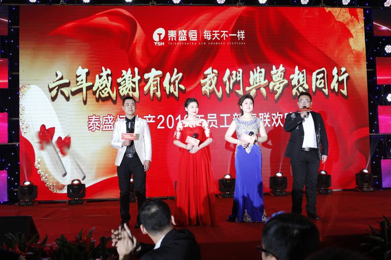 晚會(huì)之前,廣大員工紛紛在簽名墻和祝福墻上進(jìn)行簽名和留言,寫(xiě)下自己的新年愿望和對(duì)公司的美好祝福。下午四時(shí),現(xiàn)場(chǎng)人員共同觀看了公司的拜年視頻、《與夢(mèng)想同行》主題視頻。隨著開(kāi)場(chǎng)舞《光耀泰盛恒》的華麗上演,晚會(huì)拉開(kāi)帷幕。公司總經(jīng)理趙利捷上臺(tái)致答謝詞,表達(dá)了對(duì)員工及其家屬的感謝和祝福,并宣布晚會(huì)正式開(kāi)始。